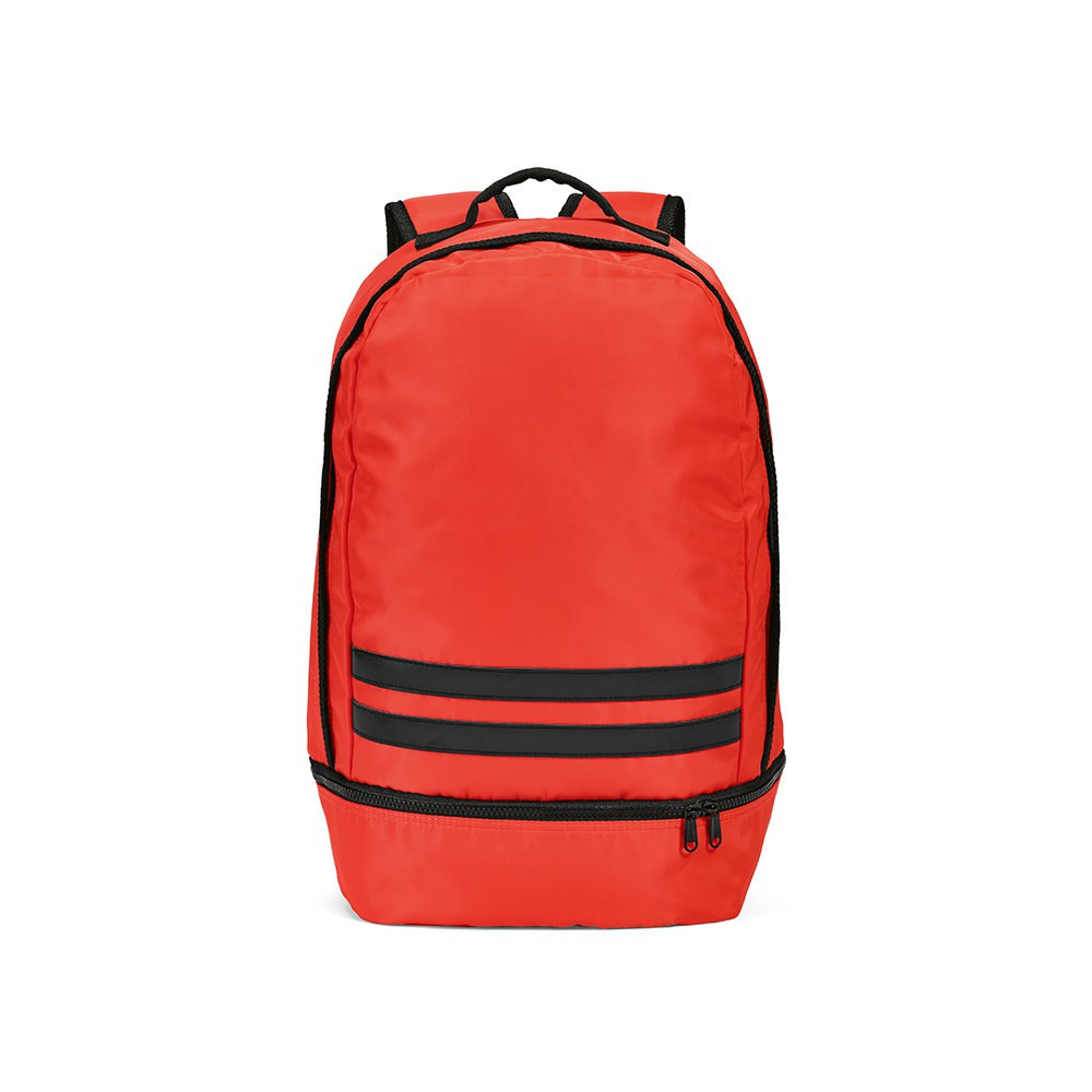 Buenos Aires Backpack made from rPET, is a 25L backpack designed with functionality in mind. This is a lightweight bag but it is not light on features. This bag features back padding, a reinforced top handle and two black reflective front stripes for safety. On the bottom, there is a separate pocket ideal for shoes. Available in 8 colours.