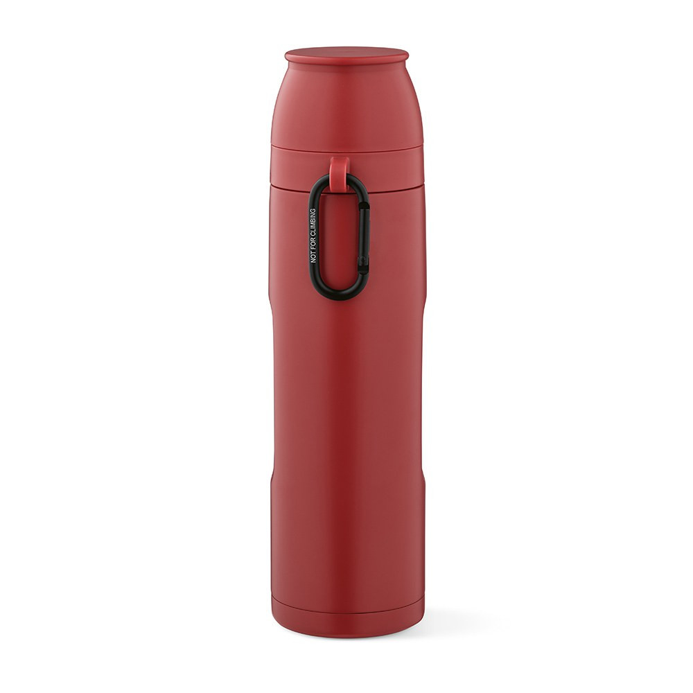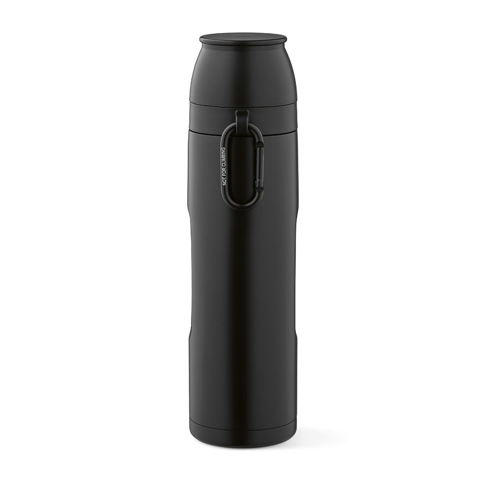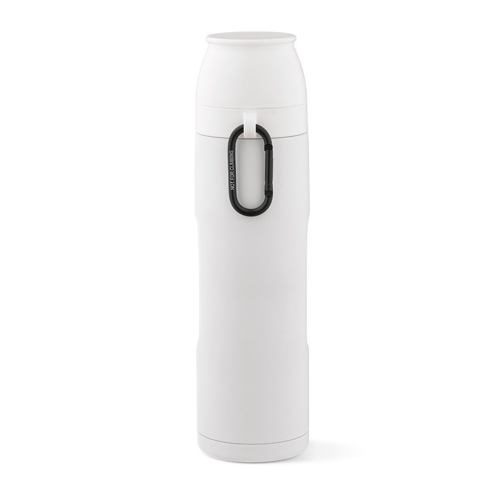 Flinders 1080ml (1000ml net) thermos is crafted from recycled stainless steel. It features a carabiner for easy transport. Double-wall insulation keeps your drinks perfectly hot for 20 hours or cold for 55 hours and 2 cups for drinking (19cl and 22cl). Available in 5 colours and in an individual kraft box.