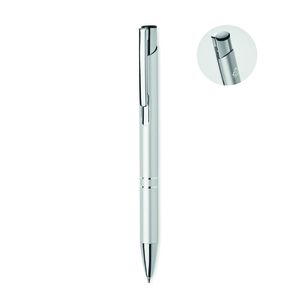 Be ready for any occasion with the recycled aluminium ballpoint pen featuring a push button for quick use, a handy side clip to take it anywhere and a streamlined blue and white design