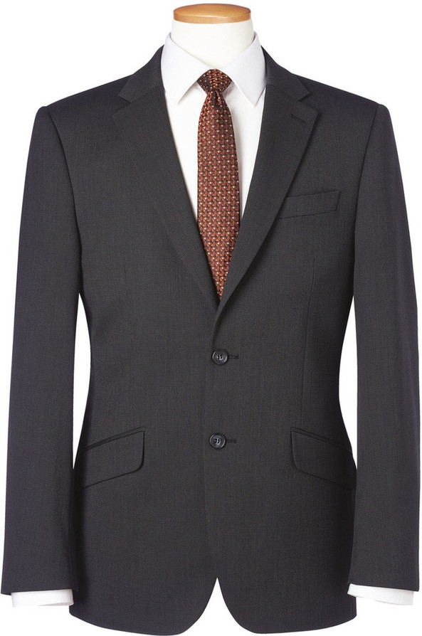 This jacket has two buttons, a slim fit, and two slits for a fashionable look.