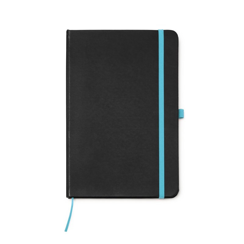 Open the notebook, write on lined sheets, secure with elastic closure.