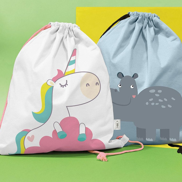 Drawstring backpack with design of cute little animals. Drawstring closure
