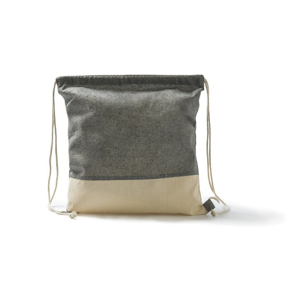 Backpack with drawstring, in recycled cotton with a mélange finish and natural cotton, 120 g/m². Lanyards in natural color.