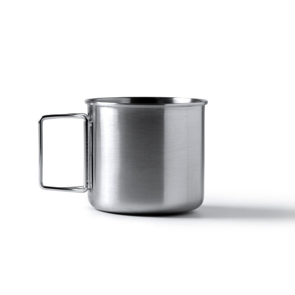 stainless steel mug with folding handles. Capacity 450 ml. Supplied in single white packaging.