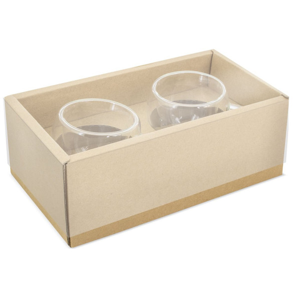 Coffee set consisting of two cups in borosilicate glass, double wall and two bamboo coasters. Supplied in single pack.