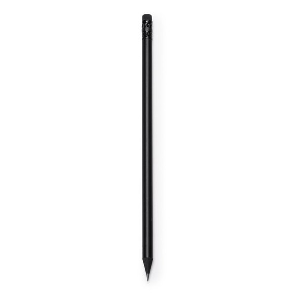 Wooden pencil, available in a wide range of colour, with rubber. With black lead.