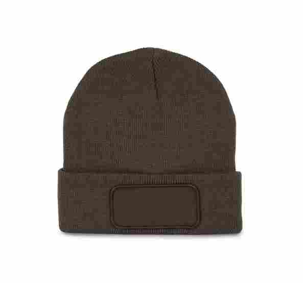 Knitted turn-up beanie in soft acrylic.