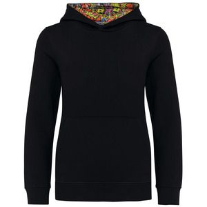 Kariban K4014 - Black / Skate Graffiti - Unisex kids contrast patterned hooded sweatshirt