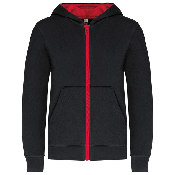 Kariban K486 - Black / Red - Children's zipped hooded sweatshirt