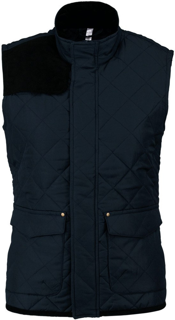 This quilted bodywarmer has a press-on shoulder yoke.