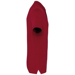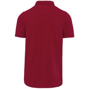 It has a slim fit, a shirt collar with a contrasting button placket, short sleeves, and is made of a nice cotton and viscose blend.