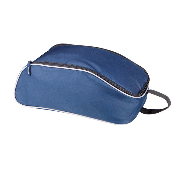 Shoe bag in 600D PU backing, contrast color piping, 2 eyelets.