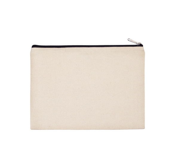 It's made of cotton canvas, so it's sturdy, and its simple rectangular shape with a contrasting zipper closure makes it appealing.