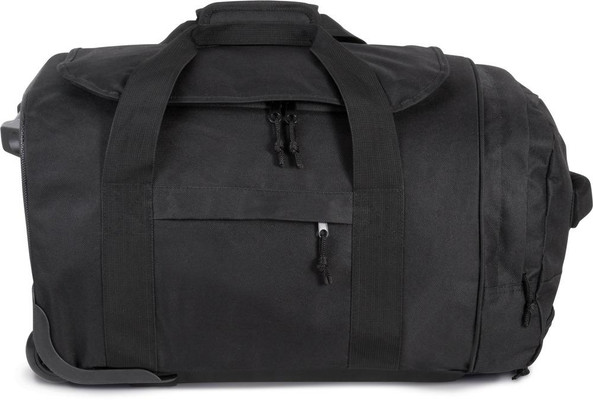 600D polyester size holdall trolley suitcase with zipped top flap closure.