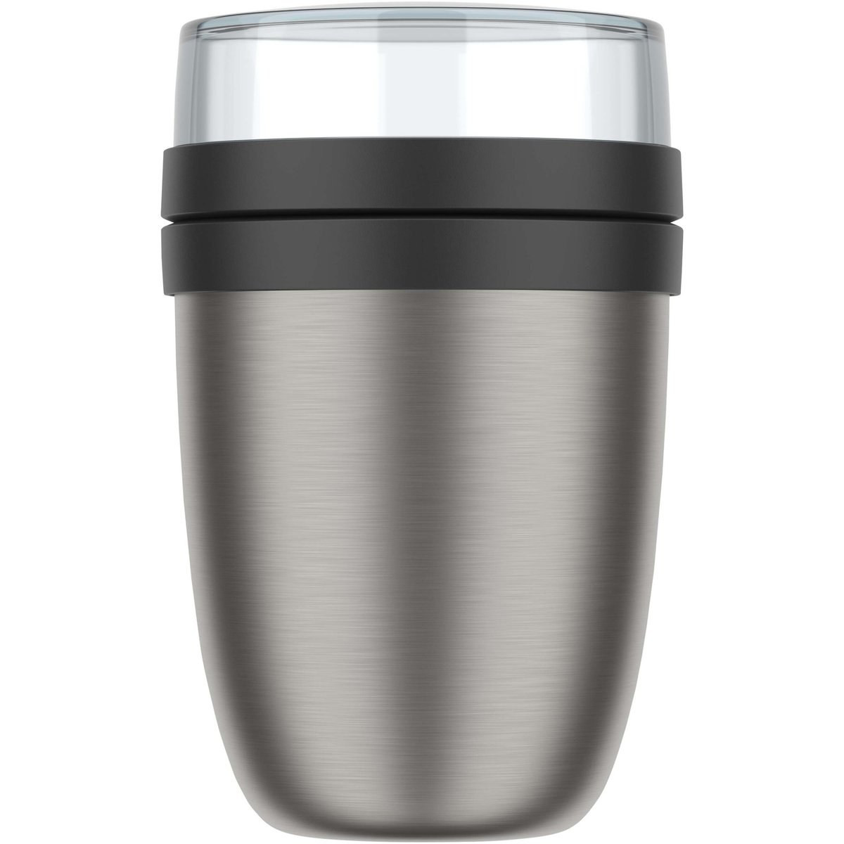 Insulated lunch pot featuring two different compartments to keep the different ingredients separated. Both containers have a separate lid so that the ingredients doesn't mix. Keeps food warm for 6-8 hours or cold for 12 hours. The content of the top transparent container is 200 ml. The capacity of the bottom container is 500 ml. Made of durable material, and the outside of the pot stays cool and dry. Washing by hand is recommended. The plastic parts of the cap can be put in the dishwasher.