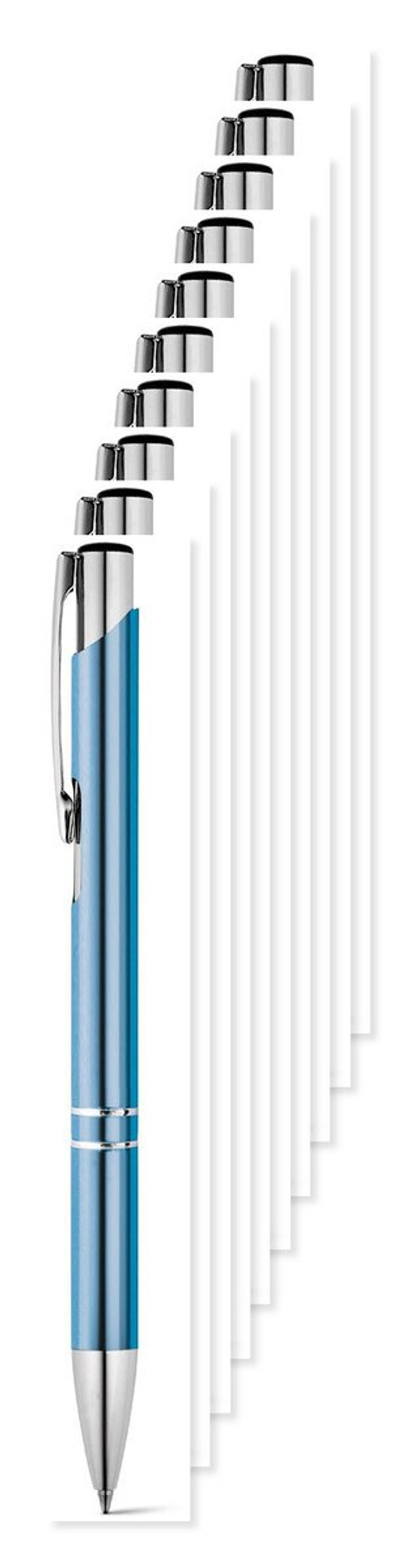 Pack of 100 Egotier 91311 - Light Blue - Aluminium ball pen with clip
