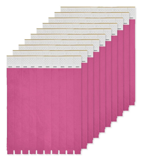 Pack of 100 GiftRetail MO8942 - Fuchsia - Durable Tyvek Event Wristbands - Pack of 10