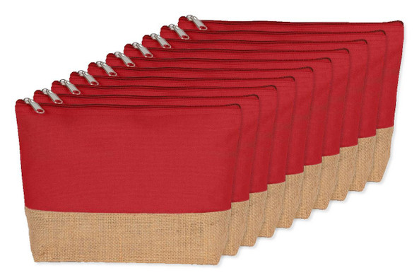 Pack of 100 Kimood KI0276 - Arandano Red / Natural - Eco-Friendly Canvas and Jute Zipper Pouch