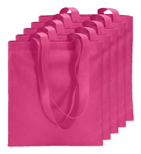 Pack of 5 GiftRetail IT3787 - Fuchsia - TOTECOLOR Versatile Reusable Shopping and Beach Tote Bag
