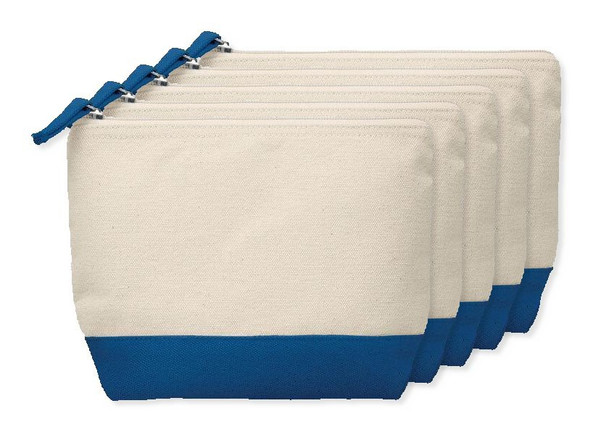 Pack of 5 GiftRetail MO9815 - Blue - KLEUREN Stylish Two-Tone Cotton Cosmetic Bag with Zipper