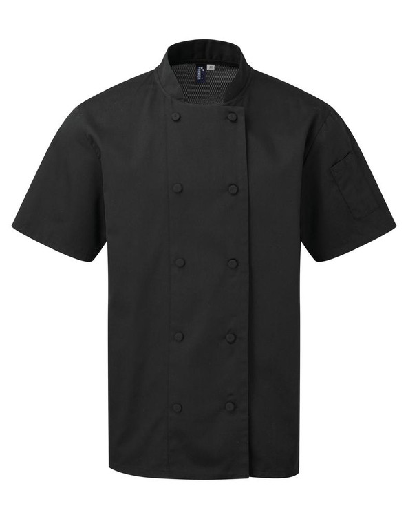 Premier PR902 - Black - Coolchecker® short-sleeved chef's jacket