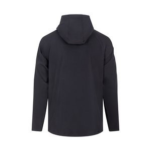4-way stretch microfiber. Antistatic. Full zip closure. 3-panel hood with drawstring. Dropped back.